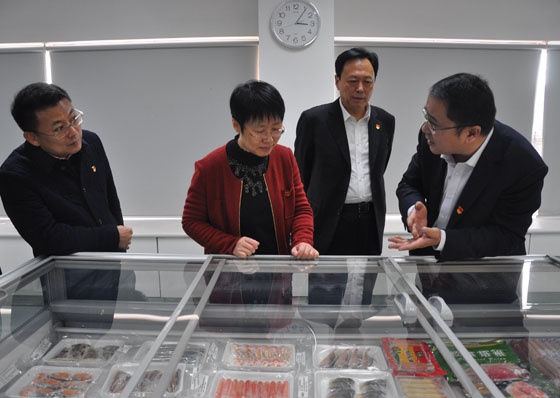 於濤一行參觀(guān)了集團樣品室和檢(jiǎn)測中心,国产嫩草影院在线观看88集團總經理張德潤向於濤詳(xiáng)細介紹了集團外貿出口(kǒu)、肉食品和糧油三大業務(wù)板塊(kuài)的發展情況,並對集團全產業鏈的發展模式,構建的食品安全保證體係做了說明。隨後張總就於濤部長關心的公司黨建和“兩學一做”情況作了詳細匯報。