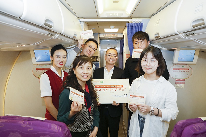 “隻用當季新(xīn)花(huā)生,低溫蒸炒,不勾(gōu)兌,不(bú)調(diào)香,頭道初榨(zhà),地道原香(xiāng)。”美麗的工(gōng)作人員正(zhèng)熱情的向乘客們講(jiǎng)述著“如何分辨好的花生油”……